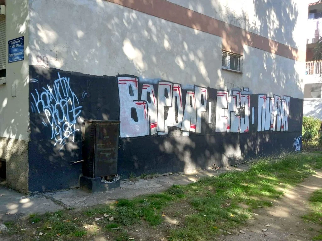 But reality pulls me back into the present. Instead of vivid graffiti, in Madzhari I am greeted by gray facades and children’s scribbles. A few nationalist messages remain like ugly scars on the walls, reminders of wounds that refuse to heal. Here and there, lyrics from turbo-folk songs – the contemporary poetry of a generation lost between the past and the future.