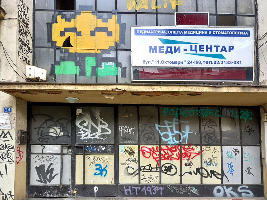 The large pieces by Drash, OKS, and SRK from 2012 stand proudly, witnesses to the time when the graffiti scene in Skopje was going through something like a renaissance. The pixel flower blooms on concrete, a reminder that beauty can grow even in the harshest conditions.