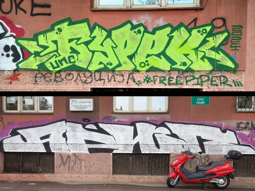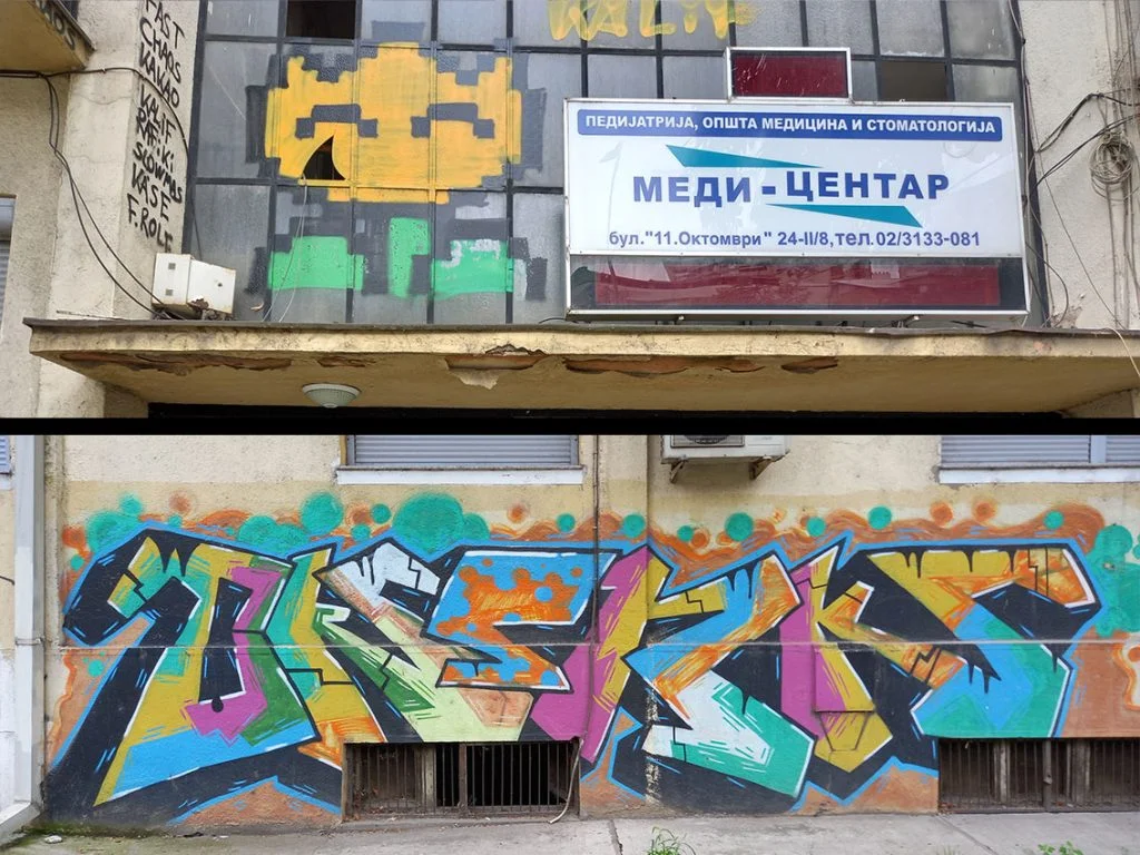 There is also the unavoidable Hrom, whose silver tag serves as a reminder of the neighborhood he comes from. His name is synonymous with the first graffiti supply shop in Skopje – yet another part of the history of Skopje’s street art.
