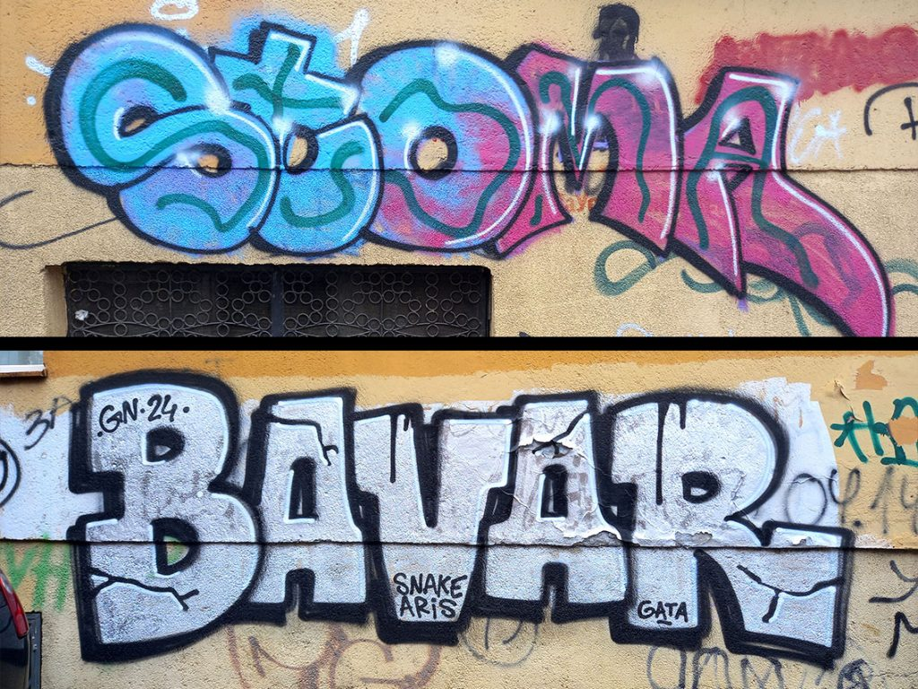 I frame a shot of a Drash graffiti with a cat sitting on a car beside it. The cat looks at me suspiciously, as if it knows I am photographing it. I smile, remembering that Machka is the nickname of another well-known graffiti writer and a frequent collaborator of Drash. Coincidence? In the world of graffiti, nothing is accidental.