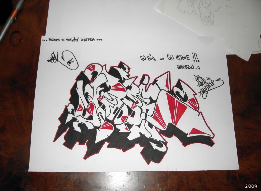 Иле: Да, отприлика 2010. Тој период го составивме гевгелиското графити кру GRFC. Во составот бевме 3 членови на почетокот, сите 1991 генерација. А кратенката GRFC доаѓа од Gevgelija Rap Fanatics Crew. Да напоменам дека истата оваа екипа издадовме демо рап албум во 2007 година со наслов „Новиот Почеток“ под рап псевдонимот „Трета Димензија“.