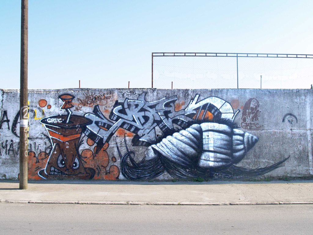 (Класика. Немало „Монтана“, немало фенси капови. Имало железара и желба. Во групата „Графит.мк“ имаме споделено неколку графити од неговата GRFC Crew. Во недостиг информации други цртачи споделија дека групата е настаната во 2010 година. Тука веќе навлеговме во микро-историјата на гевгелиската сцена.)
