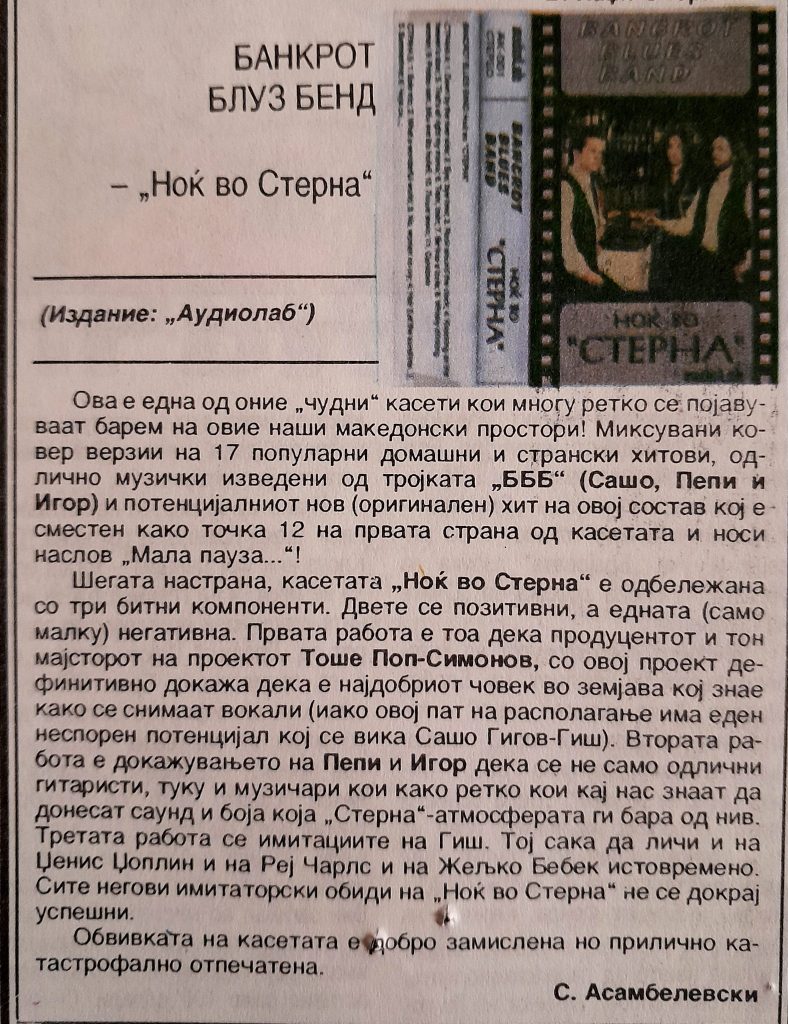 Како дел од нашите напори за систематско архивирање на македонската популарна култура, овој текст претставува проширена биографска белешка за Банкрот блуз бенд – состав со култен статус, за кој изненадувачки постои многу малку консолидиран материјал на македонски јазик во дигиталниот простор.