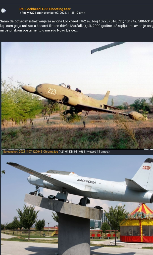 Според Марјан Трајков, авионот е TV-2, не T-33A