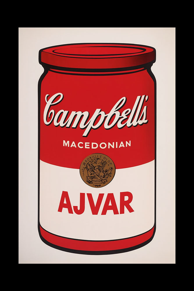 Кога ќе го замениш зборот soup со ajvar, поп-артот станува нешто друго: не критика на капитализмот, туку љубовно писмо до Македонија.