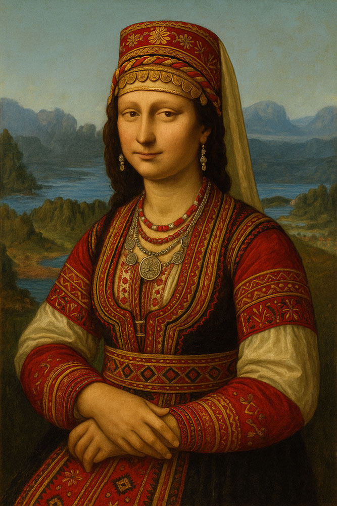 Кога Леонардо да Винчи би бил од Македонија, неговата Џоконда би носела народна носија, сребрен накит и везено елече од Реканскиот регион. Позадината – не тоскански пејзаж, туку можеби Охридското Езеро веднаш по залезот на сонцето.