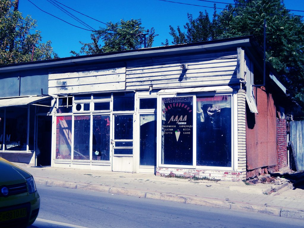 Се симнувам да фотографирам. Ѕвонење, рампата се спушта. Се мислам дали да преминам; чуварот ми вели „It’s ok. Not right“. Со фотоапаратот на врат и ранецот на рамо веројатно личам на странец. Рампата се крева; воз – нема. До шините – стара дрвена куќичка, како од филм. Погоре – излупен излог од некогашната слаткарница „Лала“: „палачинки, слатки, торти, лимонада, боза, кафе“. Погоре – ќебапчилница „Дон Тони“. Од сите тие – работи само берберницата „Таме“. Тезата која татко ми ја кажа кога бев дете држи вода: „сите бизниси можат да пропаднат, само фризерите – не.“ Човечката суета е најупорниот систем на вреднување.