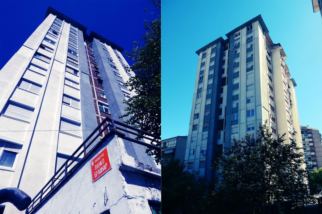 „Да ја сликаш онаа зграда.“ – „Да, ја сликав.“ – „Собрание беше порано.“ – „Од кога?“ – „Не знам. Јас сум ’45-то годиште. Пред мене. Бев фудбалер. Југославија беше држава; јаки бевме во спортот. Играв во Скопје, ама се заебав – се вратив во Велес. Велес е еврејски град. Секој за секого знае. А ти што си?“ – „Новинар.“ – „Е не ви е лесно ни на вас.“ Наскоро разговорот станува мрачен. За тројното убиство во Велес што ја потресе јавноста. Се разделуваме.
