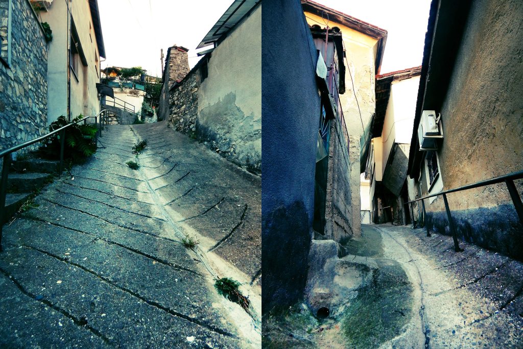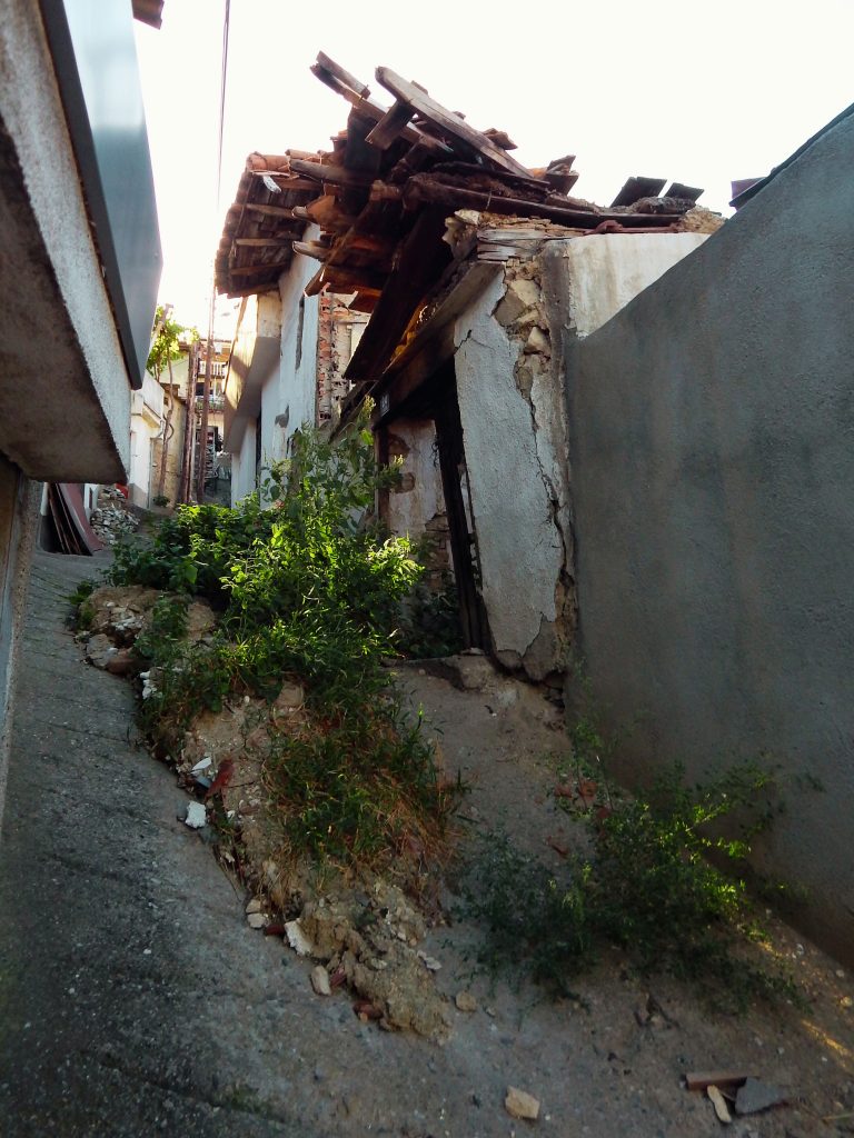 Во „горното маало“ налетувам на куќа што се распаѓа, буквално спрострена сред улица; зад неа лае големо куче. Се враќам 2-3 куќи назад. Кај куќата каде загинале Крапчеви, ме пречекува човек. „Горе има куче, врзано ли е?“, го прашувам. „Не знам.“, ми одговара. Почнуваме муабет: во неговата куќа нашле скривница и пушки; горните маала се мртви, иселени. „Ја сликаше ли срушената? Прати ги сликите до Општина, срамота е.“ Сака да ја продаде куќата и да слезе во Центар. Му велам: грешка е да се развива само центарот – странците не доаѓаат по кафулиња; бараат автентична култура, стари градби и маала. Овие стрмни улички се совршени за тоа. (Наместо Сиена – отријте го Велес! смислувам слоган во себе). Велес има што да покаже – само треба да веруваме во него.