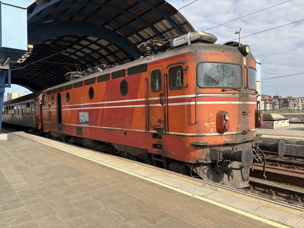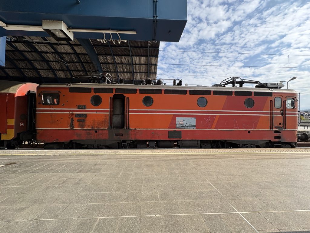 Електрична локомотива MŽ 441-044 од 1970 година, ASEA/Rade Končar, 3.8 MW, 120 km/h, универзална локомотива на македонските железници – само што сега носи патина и графити од половина век балканска историја.