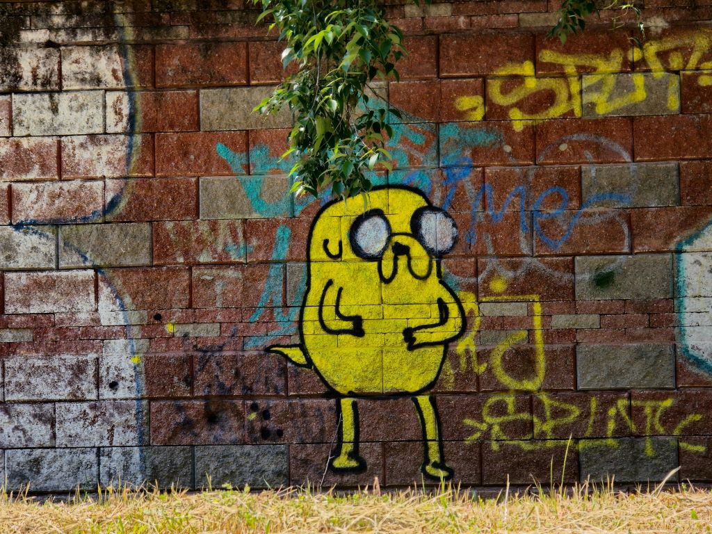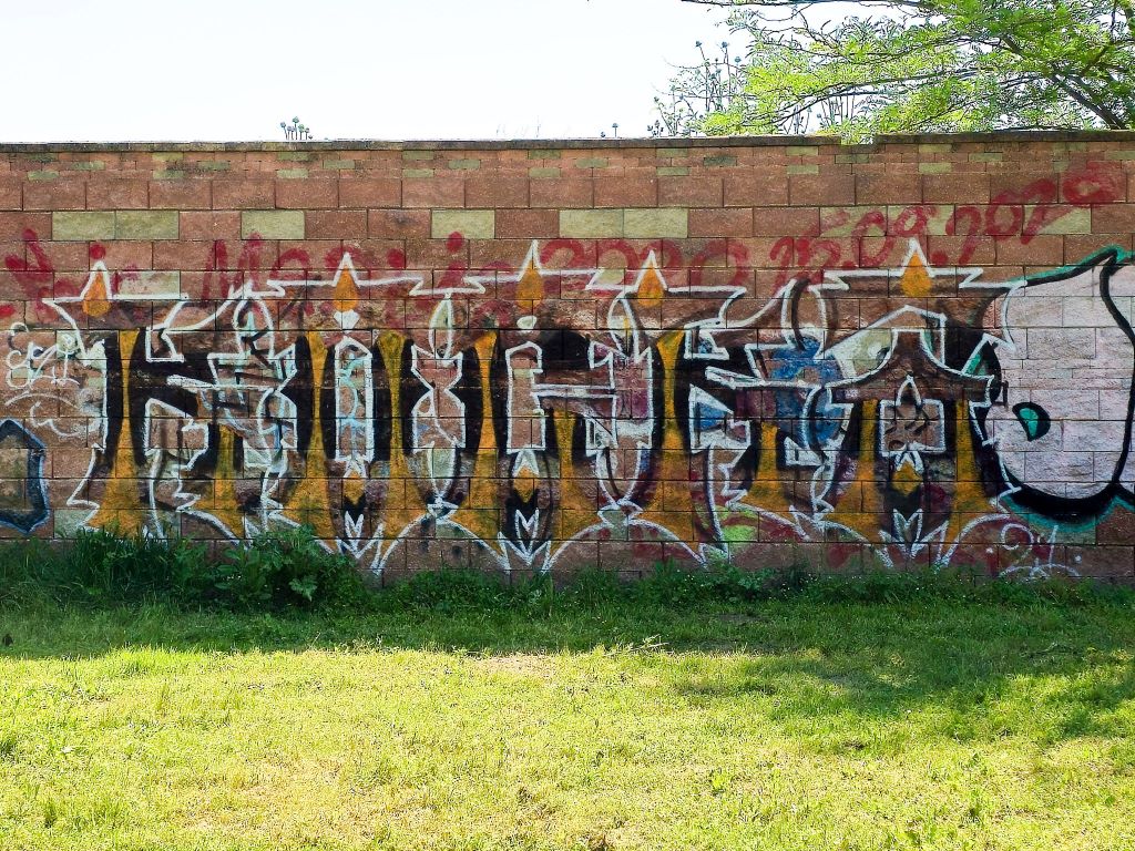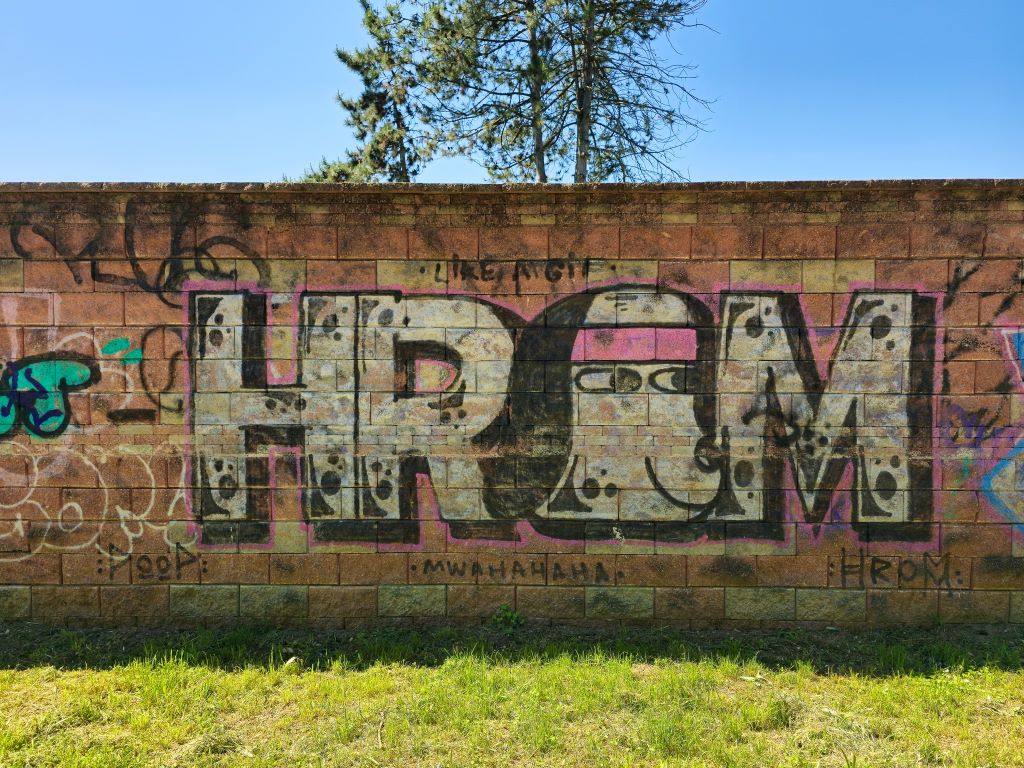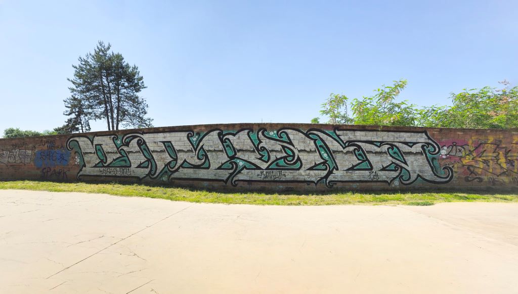 Наспроти нив, графитите што се појавуваат околу комплексот доаѓаат од улицата – нерегулирани, често анонимни, но искрени реакции на просторот. Токму тој паралелизам меѓу „дозволеното“ и „недозволеното“ ја прави оваа микролокација особено силна во визуелната меморија на Скопје.